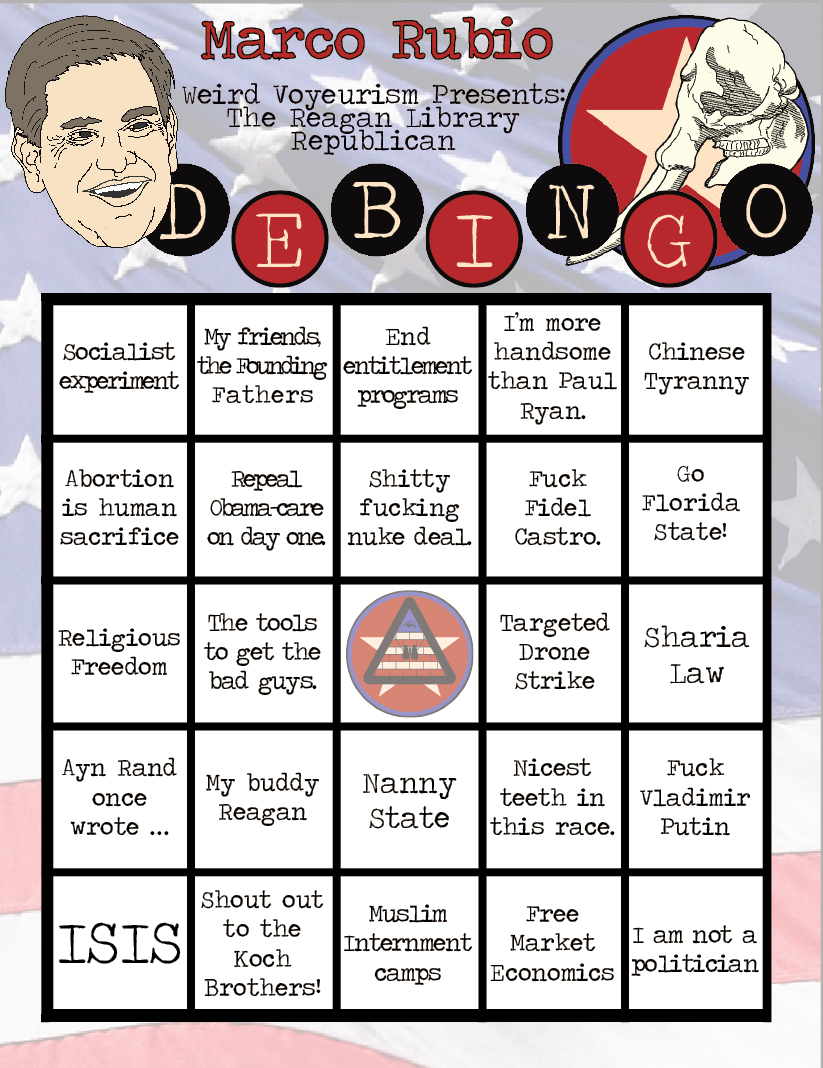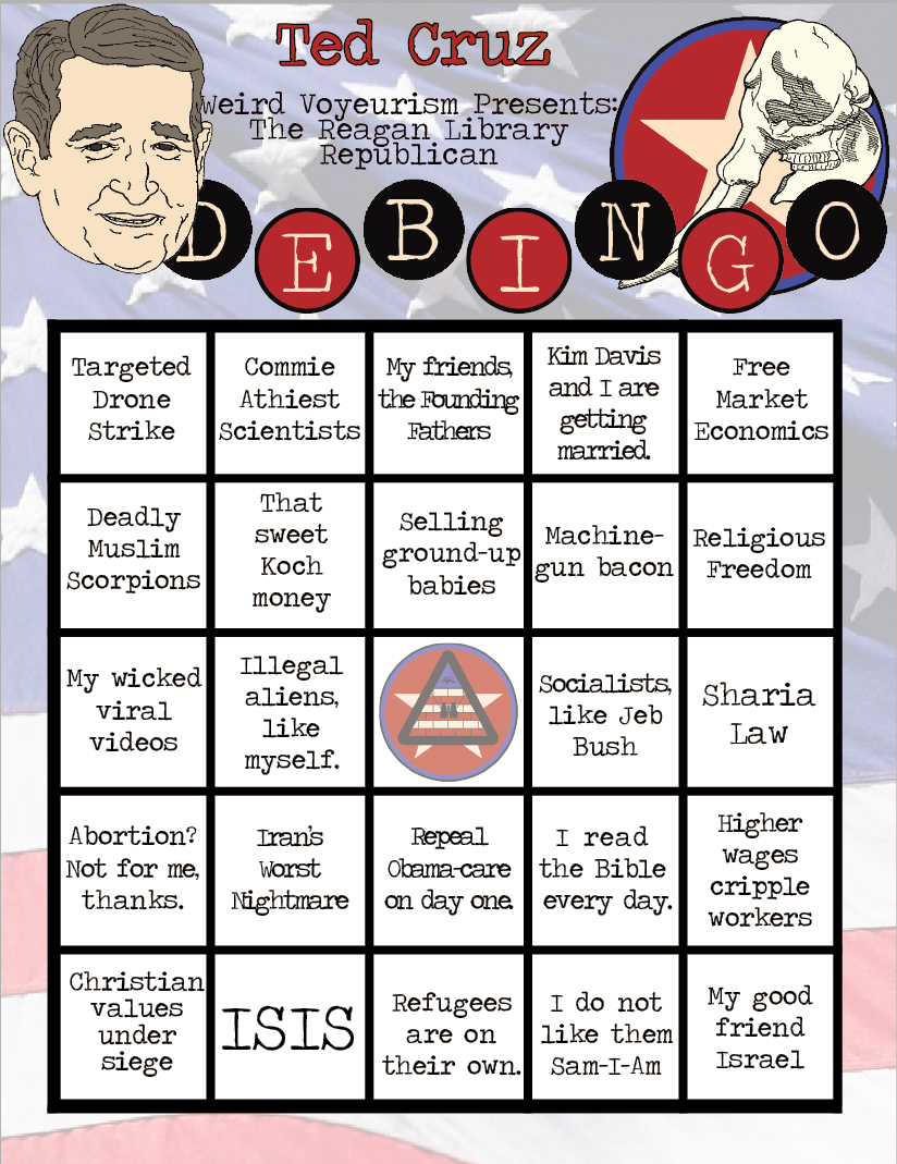 Pick your favorite candidate, print out their card, and cross-off every obnoxious thing that that have to say!